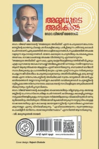 ഡോ. വിജയ് മേനോന്റെ ‘അമ്മയുടെ അരികിൽ‘ എന്ന ചെറുകഥാസമാഹാരം മനസ്സിന്റെ കാന്തസൂചികളെ പല ദിശകളിലേക്കും ചലിപ്പിക്കുന്ന പതിനാലു കഥകൾ ചേർന്നതാണ്. പ്രത്യക്ഷത്തിൽ അവ ലളിതാഖ്യാനങ്ങൾ, സൂക്ഷ്മത്തിൽ അകമേ വളരുന്ന ബൃഹദാഖ്യാനങ്ങൾ. ഓരോ കഥയുടെ ചെറുതരിയും പോകെപ്പോകെ അനേകം ഭാവലോകങ്ങളെ അകമേ വിടർത്തുന്നു എന്നാണനുഭവം.“അമ്മയുടെ അരികിൽ‘ എന്ന കഥ, ഏതു യന്ത്രനിയന്ത്രിതയുഗത്തിൽ ജീവിച്ചാലും എത്ര ധൂസരമായ ലോകാവസ്ഥയ്ക്ക് അടിമപ്പെടേണ്ടി വന്നാലും നാഭിനാളബന്ധം ആണ് ആത്യന്തികമായ ആശ്രയം എന്ന് തോന്നിക്കുന്നു. ബന്ധങ്ങൾ മാറിമാറി സ്ഥാപിക്കുകയും ഉപചാരത്തിന്റെ മധുരം പുറമേ പുരട്ടി സൗഹൃദം നടിക്കുകയും ചെയ്യുന്ന ജീവിതശീലം പെരുത്തുവരുമ്പോഴും അതിനിടയിൽപ്പെട്ട ഒരു മനസ്സ് അമ്മ എന്ന സ്നേഹതപസ്സിന്റെ അരികിലേക്ക് സ്വന്തം നേട്ടങ്ങൾ വിഗണിച്ചും ഓടിയെത്താൻ തയ്യാറാവുന്നത് ഈ കഥയിൽ വായിക്കുമ്പോൾ പെറ്റമണ്ണിന്റെ വറ്റിപ്പോകാത്ത സ്നേഹസൗരഭം കഥാകാരൻ്റെ നാഡികളിലൂടെ ഒഴുകിക്കൊണ്ടി രിക്കുന്നതും സ്പർശിച്ചനുഭവിക്കാം.ഡോ. വിജയ് മേനോന്റെ കഥകളിലെ ഭാഷാശൈലിയും ശില്പസ്വരൂപവും മലയാള മണ്ണിന്റെ വചനസംസ്കാരപരിമളം ചേർന്നതാണ്. കവിതകളും കഥകളിപ്പദങ്ങളും നാട്ടുമൊഴിത്തളിരുകളും നമ്പ്യാരുടെ നർമ്മത്തിളക്കവും വിഷമാലിന്യങ്ങൾ വന്നു മൂടിയെങ്കിലും അടിയിലൂടെ നിർമ്മലമായി മൂകമായി ഒഴുകുന്ന നാട്ടരുവി പോലുള്ള ഭാഷാശൈലിയും ഈ കഥകളെ മലയാളമനസ്സിന്റെ സ്വാഭാവികോച്ചാരണമാ ക്കുന്നല്ലോ എന്നു വിസ്മയിക്കുന്നു. “എവിടെത്തെയന്നം നുണഞ്ഞാലും പൊക്കിളിൻ തനിരസം താനേയുണർന്നേക്കാം” എന്നറിഞ്ഞ് ആനന്ദിക്കുന്നു.– വി. മധുസൂദനൻ നായർWrite a review on this book!. Write Your Review about അമ്മയുടെ അരികിൽ Other InformationThis book has been viewed by users 7 times