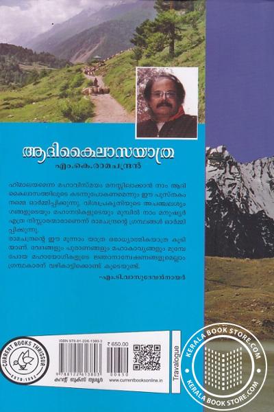 ഹിമാലയമെന്ന മഹാവിസ്മയം മനസ്സിലാക്കാന് നാം ആദികൈലാസത്തിലൂടെ കടന്നുപോകണമെന്നും ഈ പുസ്തകം നമ്മെ ഓര്മ്മിക്കുന്നു. വിശ്വപ്രകൃതിയുടെ അചഞ്ചലശൃംഗങ്ങളുടെയും മഹാനദികളുടെയും മുമ്പില് നാം മനുഷ്യര് എത്ര നിസ്സാരന്മാരാണെന്ന് രാമചന്ദ്രന്റ ഗ്രന്ഥങ്ങള് ഓര്മ്മിപ്പിക്കുന്നു.