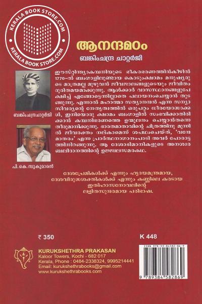ദേശപ്രേമികൾക്ക് എന്നും ഹൃദയമന്ത്രമായ, ദേശവിരുദ്ധശക്തികൾക്ക് എന്നും കണ്ണിലെ കരടായ ഇതിഹാസനോവലിൻ്റെ ലളിതസുന്ദരമായ പരിഭാഷ.Write a review on this book!. Write Your Review about ആനന്ദമഠം Other InformationThis book has been viewed by users 2610 times