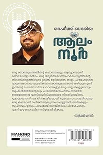 ഒരു നോവലും അതിന്റെ കഥാസാരമല്ല. ആഖ്യാനമാണ് നോവലിന്റെ ശരീരം. ഒരു യാത്രയിലെന്നപോലെ ഗദ്യത്തിന്റെ തീവണ്ടിപ്പാളത്തിലൂടെ ശ്രുതി മുറിയാതെ, താളം പിഴയ്ക്കാതെ വായനക്കാരായ യാത്രികരെ കൊണ്ടുപോകാന് കഴിയുന്നുണ്ട് ഇതിന്റെ രചയിതാവിന്. ഖവാലികളുടെയും തുമ്രികളുടെയും സുഫിഗീതത്തിന്റെയും പശ്ചാത്തലസംഗീതം നിറഞ്ഞ, ഉത്തരേന്ത്യന് വാസ്തുശില്പങ്ങളുടെ നിരതിശായിത്വം ഏതുരംഗത്തിനും പിന്കാഴ്ചയായി പുലരുന്ന വ്യത്യസ്തമായ ഒരു കഥയാണ് റഫീക്ക് ആഖ്യാനം ചെയ്യുന്നത്. ഓര്മ്മകളും സ്വപ്നവും ഊടും പാവുമായി നെയ്ത ഒരു ചിത്രകംബളം എന്ന് ഈ നോവലിനെ വിശേഷിപ്പിക്കാം. – സുഭാഷ് ചന്ദ്രന്Write a review on this book!. Write Your Review about ആലം നൂര് Other InformationThis book has been viewed by users 20 times