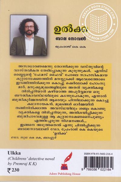 - ഡോ. സുധ കെ കെ, ബാംഗ്ലൂർWrite a review on this book!. Write Your Review about ഉൽക്ക -ബാല നോവൽ- Other InformationThis book has been viewed by users 8 times