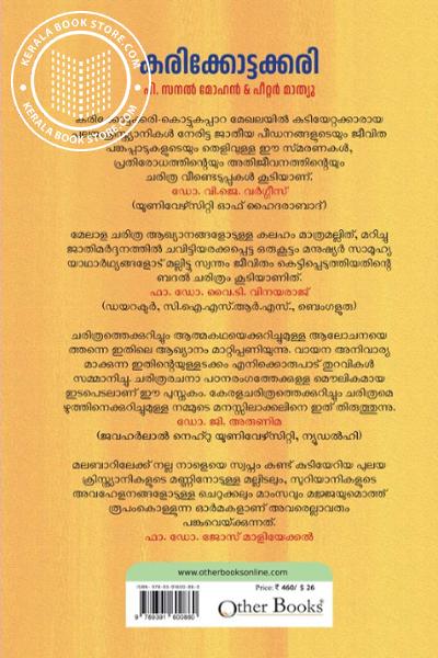 മലബാറിലേക്ക് നല്ല നാളെയെ സ്വപ്നം കണ്ട് കുടിയേറിയ പുലയ ക്രിസ്ത്യാനികളുടെ മണ്ണിനോടുള്ള മല്ലിടലും, സുറിയാനികളുടെ അവഹേളനങ്ങളോടുള്ള ചെറുക്കലും മാംസവും മജ്ജയുമൊത്ത് രൂപംകൊള്ളുന്ന ഓർമകളാണ് അവരെല്ലാവരും പങ്കുവെയ്ക്കുന്നത്.Write a review on this book!. Write Your Review about കരിക്കോട്ടക്കരി Other InformationThis book has been viewed by users 24 times