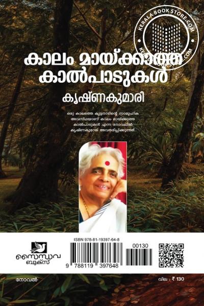 ഒരു കാലത്തെ കുട്ടനാടിൻ്റെ സാമൂഹിക അവസ്ഥയാണ് കാലം മായ്ക്കാത്ത കാൽപാടുകൾ എന്ന നോവലിൽ കൃഷ്ണകുമാരി അവതരിപ്പിക്കുന്നത്.Write a review on this book!. Write Your Review about കാലം മായ്ക്കാത്ത കാൽപാടുകൾ Other InformationThis book has been viewed by users 8 times