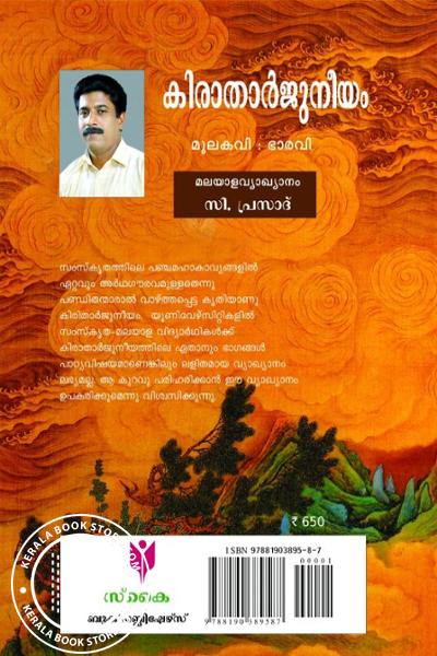 സംസ്കൃതത്തിലെ പഞ്ചമഹാകാവ്യങ്ങളിൽ ഏറ്റവും അർഥഗൗരവമുള്ളതെന്നു പണ്ഡിതന്മാരാൽ വാഴ്ത്തപ്പെട്ട കൃതിയാണു കിരിതാർജുനീയം. യൂണിവേഴ്സിറ്റികളിൽ സംസ്കൃത-മലയാള വിദ്യാർഥികൾക്ക് കിരാതാർജുനീയത്തിലെ ഏതാനും ഭാഗങ്ങൾ പാഠ്യവിഷയമാണെങ്കിലും ലളിതമായ വ്യാഖ്യാനം ലഭ്യമല്ല. ആ കുറവു പരിഹരിക്കാൻ ഈ വ്യാഖ്യാനം ഉപകരിക്കുമെന്നു വിശ്വസിക്കുന്നു.Write a review on this book!. Write Your Review about കിരാതാർജുനീയം Other InformationThis book has been viewed by users 24 times