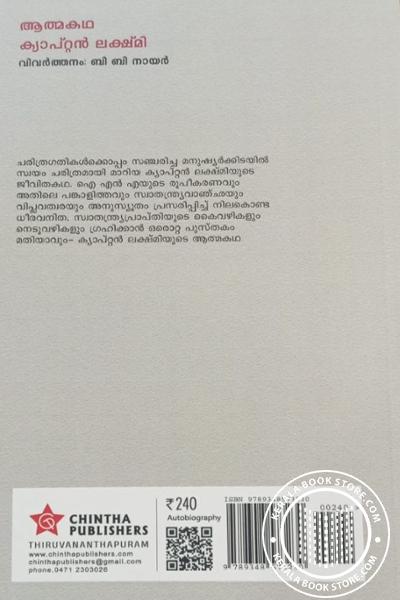 ചരിത്രഗതികൾക്കൊപ്പം സഞ്ചരിച്ച മനുഷ്യർക്കിടയിൽ സ്വയം ചരിത്രമായി മാറിയ ക്യാപ്റ്റൻ ലക്ഷ്മിയുടെ ജീവിതകഥ. ഐ എൻ എയുടെ രൂപീകരണവും അതിലെ പങ്കാളിത്തവും സ്വാതന്ത്ര്യവാഞ്ഛയും വിപ്ലവത്വരയും അനുസ്യൂതം പ്രസരിപ്പിച്ച് നിലകൊണ്ട ധീരവനിത, സ്വാതന്ത്യപ്രാപ്തിയുടെ കൈവഴികളും നെടുവഴികളും ഗ്രഹിക്കാൻ ഒരൊറ്റ പുസ്തകം മതിയാവും- ക്യാപ്റ്റൻ ലക്ഷ്മിയുടെ ആത്മകഥWrite a review on this book!. Write Your Review about ക്യാപ്റ്റൻ ലക്ഷ്മി Other InformationThis book has been viewed by users 216 times