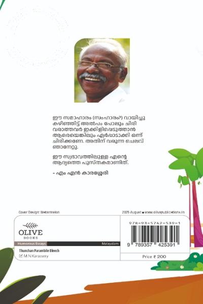 ഈ സ്വഭാവത്തിലുള്ള എൻ്റെ ആദ്യത്തെ പുസ്തകമാണിത്.Write a review on this book!. Write Your Review about തുഞ്ചൻ പറമ്പിലെ ബ്ലീച് Other InformationThis book has been viewed by users 19 times