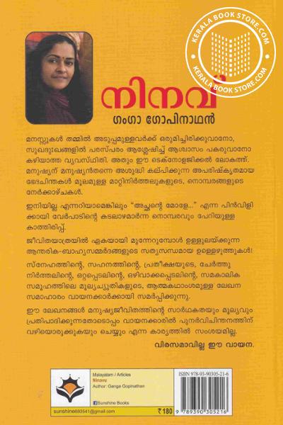 വിരസമാവില്ല ഈ വായന.Write a review on this book!. Write Your Review about നിനവ് Other InformationThis book has been viewed by users 7 times