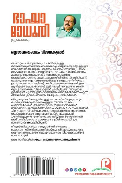 വിദ്യാർത്ഥികൾക്കും ഉദ്യോഗാർത്ഥികൾക്കും ഭാഷാപ്രണയികൾക്കും വഴികാട്ടിയും തിരുമധുരംപോലെ ആസ്വാദ്യകരവുമാണ് ഒറ്റശ്ശേഖരമംഗലം വിജയകുമാറിൻ്റെ ഭാഷാമാധുരി