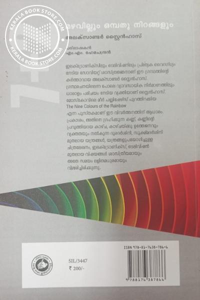 ഗ്രന്ഥരചനയിലെന്ന പോലെ വ്യാവസായിക നിർമാണത്തിലും ധാരാളം പരിചയം നേടിയ വ്യക്തിയാണ് സ്റ്റൈൻഹാസ് മോസ്കോവിലെ മീർ പബ്ലിഷേഴ്സ് പുറത്തിറക്കിയ ’The Nine Colours of the Rainbow’ എന്ന പുസ്തകമാണ് ഈ വിവർത്തനത്തിന് ആധാരം. പ്രകാശം, അതിനെ ഗ്രഹിക്കുന്ന കണ്ണ്, കണ്ണിൻ്റെ പ്രവൃത്തിയായ കാഴ്ച, കാഴ്ചയ്ക്കു ഉത്തേജനവും വ്യക്തതയും നൽകുന്ന ദൂരദർശിനി, സൂക്ഷ്മദർശിനി മുതലായ യന്ത്രങ്ങൾ, യന്ത്രങ്ങളുപയോഗിച്ചുള്ള ചിത്രലേഖനം, ഇലക്ട്രോണിക്സ്, ടെലിവിഷൻ മുതലായ വിഷയങ്ങൾ ശാസ്ത്രീയമായും അതേ സമയം ലളിതമധുരമായും വിവരിച്ചിരിക്കുന്നു.Write a review on this book!. Write Your Review about മഴവില്ലും ഒമ്പതു നിറങ്ങളും Other InformationThis book has been viewed by users 11 times