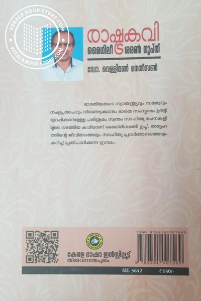 ഭാരതീയരുടെ സ്വാതന്ത്ര്യവും സമത്വവും നഷ്ടപ്രതാപവും വീണ്ടെടുക്കാനും ഭാരത സംസ്കാരം ഊട്ടിയുറപ്പിക്കാനുമുള്ള പരിശ്രമം സ്വന്തം സാഹിത്യ രചനകളിലൂടെ നടത്തിയ കവിയാണ് മൈഥിലി ശരൺ ഗുപ്ത്. അദ്ദേഹത്തിന്റെ ജീവിതത്തെയും സാഹിത്യ പ്രവർത്തനത്തെയും കുറിച്ച് പ്രതിപാദിക്കുന്ന ഗ്രന്ഥം.Write a review on this book!. Write Your Review about രാഷ്ട്രകവി മൈഥിലീ ശരൺ ഗുപ്ത് Other InformationThis book has been viewed by users 11 times