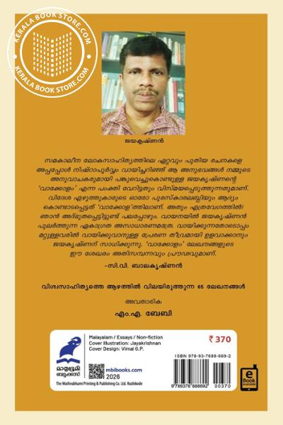 വിശ്വസാഹിത്യത്തെ ആഴത്തിൽ വിലയിരുത്തുന്ന 65 ലേഖനങ്ങൾWrite a review on this book!. Write Your Review about വാക്കോളം Other InformationThis book has been viewed by users 6 times