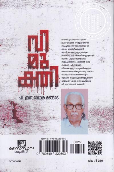 ലഹരി ഉപയോഗം എന്ന മഹാവിപത്ത് സമൂഹത്തിൽ സൃഷ്ടിക്കുന്ന ദുരന്തങ്ങളുടെ ആഴം അതിഭീകരമാണ് എന്ന് ബോദ്ധ്യപ്പെടുത്തുന്ന പ്രമേയം. ലഹരിക്കടിമപ്പെടുകവഴി സ്വന്തം കുടുംബത്തിനും സമൂഹത്തിനും മുന്നിൽ ഒരു കളങ്കിത ചിഹ്നമായി നിലകൊള്ളുന്ന വ്യക്തികളുടെ അവതരണത്തിലൂടെ ഒരു വലിയ സാമൂഹികപ്രശ്നത്തിന്റെ രൂക്ഷത വെളിപ്പെടുത്തുകയാണ് വിമുക്തി എന്ന നോവലിലൂടെ പി. ഇസഡോർ മങ്ങാട്Write a review on this book!. Write Your Review about വിമുക്തി Other InformationThis book has been viewed by users 11 times