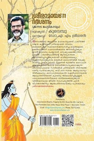 കന്നടത്തിലെ ആധുനിക മഹാകാവ്യമെന്ന് പ്രകീർത്തിതമായ കൃതിയാണ് ശ്രീരാമായണ ദർശനം രാമായണ കഥ സ്വഭാവനയ്ക്കനുസരിച്ച് മാറ്റങ്ങളോടെ ഭക്തിരസത്തിന് പോറലേൽക്കാതെ അവതരിപ്പിക്കുകയാണ് കുവെമ്പു ചെയ്യുന്നത്. മനുഷ്യപക്ഷത്തുനിന്നു കൊണ്ട് പശ്ചാത്താപത്തിന്റെ ആവശ്യകതയെ ആവർത്തിച്ചുറപ്പിക്കുകയാണ് കവിയുടെ ലക്ഷ്യം, അതിനനുയോജ്യമായ മാറ്റങ്ങൾ കഥാഗതിയിൽ നമുക്കു കാണാം. മന്ഥം, ബാലി, രാവണൻ തുടങ്ങിയ കഥാപാത്രങ്ങളുടെ മാനസികമായ പരിവർത്തനം വ്യക്തമാക്കുന്ന ചിന്തോദ്ദീപകമായ സന്ദർഭങ്ങൾ ശ്രീരാമയണ ദർശനത്തെ വേറിട്ട രചനയാക്കുന്നു. കവി ഒരേ സമയം ആഖ്യാതാവും നിരീക്ഷകനും കഥാപാത്രവുമാകുന്ന ഐതിഹാസികമായ ആഖ്യാനരീതിയാണ് കുവെമ്പു അവലംബിച്ചിട്ടുള്ളത്. പരദുഃഖമെന്തെന്നറിയാതെ തന്നിലേക്കൊതുങ്ങുന്ന വർത്തമാനകാല ജീവിത സാഹചര്യത്തിൽ പുനർ വിചിന്തനത്തിനും ആത്മപരിശോധയ്ക്കും പ്രേരകമാകും ശ്രീരാമായണദർശനം.Write a review on this book!. Write Your Review about ശ്രീരാമായണ ദർശനം Other InformationThis book has been viewed by users 14 times