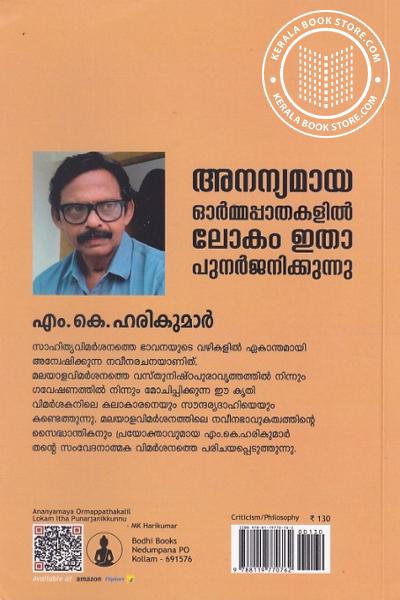 Book Name in English : Ananyamaya Ormappathakalil Lokam Itha Punarjanikkunnu