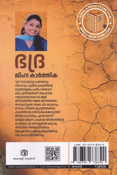 ’ഭദ്ര’ സൗഹൃദവും പ്രണയവും വിരഹവും പുതിയ കാലത്തിന്റെ മാറ്റങ്ങളെയും പ്രതിപാദിക്കുന്ന ഒരു പുസ്തകമാണ്. ഒരുപക്ഷെ നമ്മുടെയൊക്കെ കോളേജ് ജീവിതത്തിൽ നമ്മൾ അറിഞ്ഞതോ അനുഭവിച്ചതോ ആയ ചില മധുരവും നോവും നിറഞ്ഞ മുഹൂർത്തങ്ങൾ, കാലത്തിൻ്റെ ഗതിവിധികൾക്കപ്പുറത്ത് ജീവിത യാഥാർഥ്യം എന്താണെന്ന് മനസ്സിലാക്കുന്ന പക്വമായ ജീവിതത്തിന്റെ ഭാവങ്ങൾ. ഭദ്ര ഒന്നല്ലെങ്കിൽ മറ്റൊരു രീതിയിൽ നിങ്ങളായിരിക്കാം. അല്ലെങ്കിൽ ഭദ്രയിലെ മറ്റേതെങ്കിലും ഒരു കഥാപാത്രമെങ്കിലുംWrite a review on this book!. Write Your Review about ഭദ്ര Other InformationThis book has been viewed by users 6 times