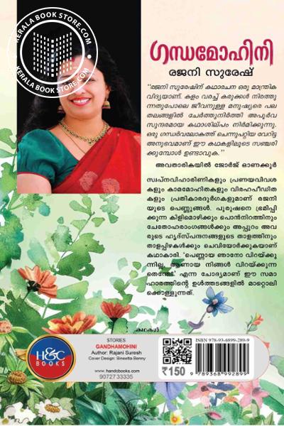 സ്വപ്നവിഹാരിണികളും പ്രണയവിവശ കളും കാമമോഹിതകളും വിരഹപീഡിത കളും പ്രതികാരദുർഗകളുമാണ് രജനി യുടെ പെണ്ണുങ്ങൾ. പുരുഷനെ ഭ്രമിപ്പി ക്കുന്ന കിളിമൊഴിക്കും പൊൻനിറത്തിനും ചേതോഹരാംഗങ്ങൾക്കും അപ്പുറം അവ രുടെ ഹൃദ്സ്പന്ദനങ്ങളുടെ താളത്തിനും താളപ്പിഴകൾക്കും ചെവിയോർക്കുകയാണ് കഥാകാരി ’പെണ്ണായ ഞാനോ വിറയ്ക്കു ന്നില്ല. ആണായ നിങ്ങൾ വിറയ്ക്കുന്ന തെന്തേ ’ എന്ന ചോദ്യമാണ് ഈ സമാ ഹാരത്തിന്റെ ഉൾത്തടങ്ങളിൽ മാറ്റൊലി ക്കൊള്ളുന്നത്.Write a review on this book!. Write Your Review about ഗന്ധമോഹിനി Other InformationThis book has been viewed by users 12 times