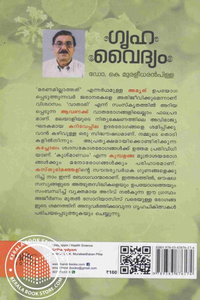 മരണമില്ലാത്തത് എന്നര്ത്ഥമുള്ള അമൃത് ഉപയോഗപ്പെടുത്തുന്നവര് ജരാനരകളെ അതിജീവിക്കുമെന്നാണ് വിശ്വാസം. വാതാരി എന്ന് സംസ്കൃതത്തില് അറിയപ്പെടുന്ന ആവണക്ക് വാതരോഗങ്ങളിലെല്ലാം ഫലപ്രദമാണ്. മലയാളിയുടെ നിത്യഭക്ഷണത്തിലെ അവിഭാജ്യഘടകമായ കറിവേപ്പില ഉദരരോഗങ്ങളെ ശമിപ്പിക്കുവാന് കഴിവുള്ള ഒരു സിദ്ധൗഷധമാണ്.Write a review on this book!. Write Your Review about ഗൃഹവൈദ്യം Other InformationThis book has been viewed by users 2265 times