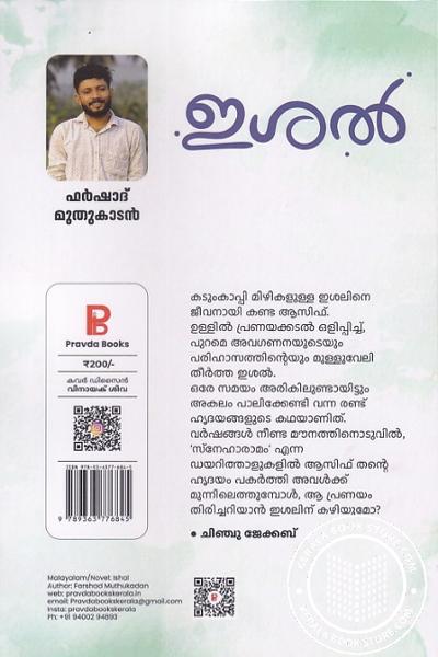 വർഷങ്ങൾ നീണ്ട മൗനത്തിനൊടുവിൽ, ’സ്നേഹാരാമം’ എന്ന ഡയറിത്താളുകളിൽ ആസിഫ് തന്റെ ഹൃദയം പകർത്തി അവൾക്ക് മുന്നിലെത്തുമ്പോൾ, ആ പ്രണയം തിരിച്ചറിയാൻ ഇശലിന് കഴിയുമോWrite a review on this book!. Write Your Review about ഇശൽ Other InformationThis book has been viewed by users 9 times