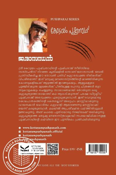 ശ്രീ കോട്ടയം പുഷ്പനാഥിൻ്റെ പുഷ്പരാജ് സീരിസിലെ സസ്പെൻസ് നിറഞ്ഞ കൃതികളിൽ ഒന്നാണ് ജരാസന്ധൻ. 1984ൽ പ്രസിദ്ധീകരിച്ച ഈ നോവൽ പതിവ് കുറ്റാന്വേഷണ രീതികൾക്ക് വിപരീതമാണ്. ഇത് മനുഷ്യ മനഃശാസ്ത്രത്തിൻ്റെ മറഞ്ഞിരിക്കുന്ന കോണുകളിലേക്ക് ആഴത്തിൽ ഇറങ്ങുകയും, ആളുകളുടെ പുഞ്ചിരിക്കുന്ന മുഖങ്ങൾക്ക് പിന്നിലുള്ള രഹസ്യ ചിത്രങ്ങൾ തുറന്നുകാട്ടുകയും ചെയ്യുന്നു. സാധാരണമായി തോന്നുന്ന ഒരു കുറ്റകൃത്യത്തോടെയാണ് കഥ ആരംഭിക്കുന്നത്. പക്ഷേ ഡിറ്റക്ടീവ് പുഷ്പരാജ് അന്വേഷണം ഏറ്റെടുക്കുമ്പോൾ. ഇത് വെറുമൊരു കൊലപാതകത്തിൻ്റെ കേസല്ലെന്ന് അദ്ദേഹം മനസ്സിലാക്കുന്നു. വായനക്കാർ യഥാർത്ഥ കുറ്റവാളി ആരാണെന്നു മനസ്സിലാക്കി യെന്ന് കരുതുമ്പോൾ, കഥയിൽ അപ്രതീക്ഷിത വഴിത്തിരിവുകൾ ഉണ്ടാകുന്നു. അത് കഥയെ പുതിയൊരു ദിശയിലേക്ക് നയിക്കുന്നു. കുറ്റകൃത്യത്തെ മനുഷ്യ മനഃശാസ്ത്രവുമായി സംയോജിപ്പിക്കാനുള പുഷ്പനാഥിൻ്റെ കഴിവിനെ ഈ പുസ്തകം പ്രതിഫലിപ്പിക്കുന്നു.Write a review on this book!. Write Your Review about ജരാസന്ധൻ Other InformationThis book has been viewed by users 8 times