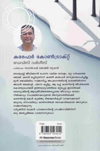 ഒരായുസ്സ് ജീവിക്കാൻ പോന്ന വലിയ ശമ്പളം. ഒറ്റ വർഷത്തെ ജോലി. കരാർ ഒപ്പിടുന്നോ? കരൺ കരേഫർ ഒന്നുമാലോചിച്ചില്ല. മുൻ ജോലിയിടം സമ്മാനിച്ച അപമാനത്തിൻ്റെ ഭാരത്തിൽനിന്ന അവൻ തലയാട്ടി. പിന്നെ ഒപ്പിട്ടു. ആ ഒപ്പ് കരണിൻ്റെ ജീവിതത്തെ കൊണ്ടുപോയത് ഉത്തരധ്രുവത്തിലെ ഒറ്റപ്പെട്ട ഇടത്തേക്ക്. ബെന്യാമിൻ്റെ ആടുജീവിതത്തെപ്പോലെ തീവ്രവും ഓരോ നിമിഷവും സംഭ്രമജനകവുമായ അനുഭവത്തിലേക്ക്, കരണിൻ്റെ മകൾ കുഞ്ഞു ടിയമോൾകുടി വായനക്കാരന് മറ്റൊരു നോവലിലും കാണാത്തത്ര വൈകാരികമായ അനുഭവം സമ്മാനിക്കുന്നു.ഡിറ്റക്ടീവ് വേലൻ പൗലോസിൻ്റെ സ്രഷ്ടാവിൽനിന്ന് ഒരു അത്യുജ്ജ്വല വായനാനുഭവംWrite a review on this book!. Write Your Review about കരേഫർ കോൺട്രാക്റ്റ് Other InformationThis book has been viewed by users 29 times