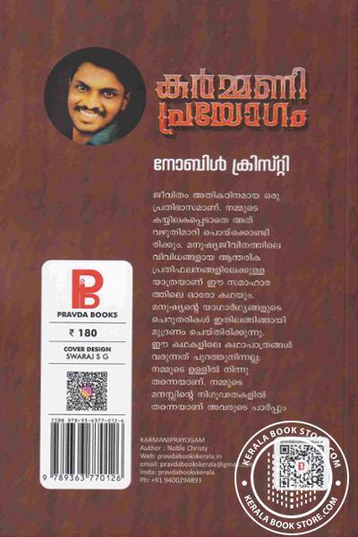 ജീവിതം അതികഠിനമായ ഒരു പ്രതിഭാസമാണ്. നമ്മുടെ കയ്യിലകപ്പെടാതെ അത് വഴുതിമാറി പൊയ്ക്കൊണ്ടിരിക്കും. മനുഷ്യജീവിതത്തിലെ വിവിധങ്ങളായ ആന്തരിക പ്രതിഫലനങ്ങളിലേക്കുള്ള യാത്രയാണ് ഈ സമാഹാരത്തിലെ ഓരോ കഥയും. മനുഷ്യന്റെ യാഥാർഥ്യങ്ങളുടെ ചെറുതരികൾ ഇതിലങ്ങിങ്ങായി മുദ്രണം ചെയ്തിരിക്കുന്നു. ഈ കഥകളിലെ കഥാപാത്രങ്ങൾ വരുന്നത് പുറത്തുനിന്നല്ല; നമ്മുടെ ഉള്ളിൽ നിന്നു തന്നെയാണ്. നമ്മുടെ മനസ്സിൻ്റെ നിഗൂഢതകളിൽ തന്നെയാണ് അവരുടെ പാർപ്പും. Write a review on this book!. Write Your Review about കർമ്മണി പ്രയോഗം Other Information This book has been viewed by users 14 times