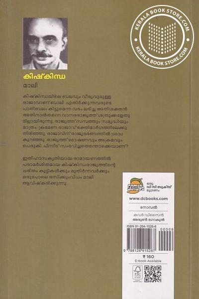 കിഷ്കിന്ധയിലെ ബലവും വീര്യവുമുള്ള രാജാവാണ് ബാലി. എതിർക്കുന്നവരുടെ പാതിബലം കിട്ടുമെന്ന വരം ലഭിച്ച അതിശക്തൻ. അതിനാൽതന്നെ വാനരരാജ്യത്ത് ശത്രുക്കളേതുമില്ലായിരുന്നു. രാജ്യത്ത് സമ്പത്തും സമൃദ്ധിയും മാത്രം. ക്രമേണ രാജാവ് ഭക്തിമാർഗത്തിലേക്കു തിരിഞ്ഞു. രാജാവിന് രാജ്യഭരണത്തിൽ ശ്രദ്ധ കുറഞ്ഞു. രാജ്യത്ത് മോഷണവും അക്രമവും പെരുകി. പിന്നീട് സംഭവിച്ചതെന്തൊക്കെയാണ്? ഇതിഹാസകൃതിയായ രാമായണത്തിൽ പരാമർശിതമായ കിഷ്കിന്ധരാജ്യത്തിന്റെ ചരിതം കുട്ടികൾക്കും മുതിർന്നവർക്കും ഒരുപോലെ രസിക്കുംവിധം മാലി ആവിഷ്കരിക്കുന്നു.Write a review on this book!. Write Your Review about കിഷ്കിന്ധ Other InformationThis book has been viewed by users 131 times