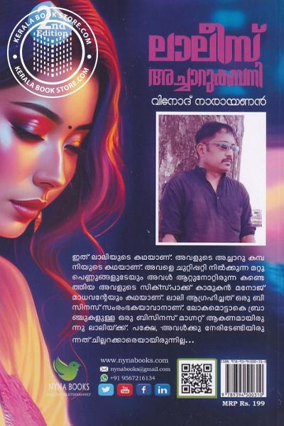 ഇത് ലാലിയുടെ കഥയാണ്. അവളുടെ അച്ചാറു കമ്പ നിയുടെ കഥയാണ്. അവളെ ചുറ്റിപ്പറ്റി നിൽക്കുന്ന മറ്റു പെണ്ണുങ്ങളുടേയും അവൾ ആറ്റുനോറ്റിരുന്ന കണ്ടെ ത്തിയ അവളുടെ സിക്സ്പാക്ക് കാമുകൻ മനോജ് മാധവൻറേയും കഥയാണ്. ലാലി ആഗ്രഹിച്ചത് ഒരു ബി സിനസ് സംരംഭകയാവാനാണ്. ലോകമൊട്ടാകെ ബ്രാ ഞ്ചുകളുള്ള ഒരു ബിസിനസ് മാഗ്നറ്റ് ആകണമായിരു ന്നു ലാലിയ്ക്ക്. പക്ഷേ, അവൾക്കു നേരിടേണ്ടിയിരു ന്നത് ചില്ലറക്കാരെയായിരുന്നില്ല...Write a review on this book!. Write Your Review about ലാലിസ് അച്ചാറുകമ്പനി Other InformationThis book has been viewed by users 8 times