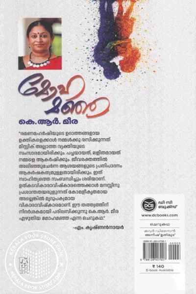 “രമണമഹര്ഷിയുടെ ഉദാത്തങ്ങളായ ഉക്തികളെക്കാള് നമ്മള്ക്കു രസിക്കുന്നത് മിസ്റ്റിക് അല്ലാത്ത വ്യക്തിയുടെ സംസാരമായിരിക്കും. പച്ചയായത്, ലളിതമായത് നമ്മളെ ആകര്ഷിക്കും. ജീവരക്തത്തില് അലിഞ്ഞുചേര്ന്ന ആശയങ്ങളുടെ പ്രതിപാദനം ആകര്ഷകത്വമുളളതായിരിക്കും. ഇത് സാഹിത്യത്തെ സംബന്ധിച്ചും ശരിയാണ്. ഉത്കടവികാരാവിഷ്കാരത്തെക്കാള് മനസ്സിനു പ്രശാന്തതയരുളുന്നത് കോമളീകൃതമായ അല്ലെങ്കില് മൃദുപക്വമായ വികാരാവിഷ്കാരമാണ്. ഈ തത്ത്വത്തിന് നിദര്ശകമായി പരിലസിക്കുന്നു കെ.ആര്.മീര എഴുതിയ മോഹമഞ്ഞ എന്ന ചെറുകഥ.”Write a review on this book!. Write Your Review about മോഹമഞ്ഞ Other InformationThis book has been viewed by users 14048 times