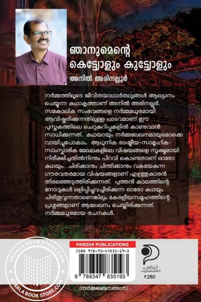 നർമ്മത്തിലൂടെ ജീവിതയാഥാർത്ഥ്യങ്ങൾ ആഖ്യാനം ചെയ്യുന്ന കഥാകൃത്താണ് അനിൽ അരിനല്ലൂർ. സമകാലിക സംഭവങ്ങളെ നർമ്മമധുരമായി ആവിഷ്കരിക്കുന്നതിലുള്ള പാടവമാണ് ഈ പുസ്തകത്തിലെ ചെറുകുറിപ്പുകളിൽ കാണുവാൻ സാധിക്കുന്നത്. കഥയായും നർമ്മലേഖനമായുമൊക്കെ വായിച്ചുപോകാം. ആധുനിക രാഷ്ട്രീയ-സാമൂഹിക-സാംസ്കാരിക മേഖലകളിലെ വിഷയങ്ങളെ സൂക്ഷ്മമായി നിരീക്ഷിച്ചതിൽനിന്നും പിറവി കൊണ്ടതാണ് ഓരോ കഥയും. ചിരിക്കാനും ചിന്തിക്കാനും വകയേകുന്ന ഗൗരവതരമായ വിഷയങ്ങളാണ് എഴുത്തുകാരൻ തിരഞ്ഞെടുത്തിരിക്കുന്നത്. പുത്തൻ കാലത്തിന്റെ നോവുകൾ ഒളിപ്പിച്ചുവച്ചിരിക്കുന്ന ഓരോ കഥയും ചിരിതൂവുന്നതാണെങ്കിലും കേരളീയസമൂഹത്തിന്റെ പ്രശ്നങ്ങളാണ് ആലേഖനം ചെയ്തിരിക്കുന്നത്. നർമ്മമധുരമായ രചനകൾ.Write a review on this book!. Write Your Review about ഞാനുമെന്റെ കെട്ട്യോളും കുട്ട്യോളും Other InformationThis book has been viewed by users 9 times