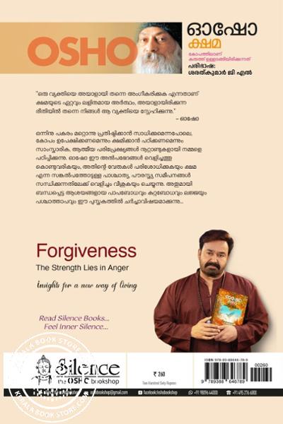 കോപം ഉപേക്ഷിക്കണമെന്നും ക്ഷമിക്കാൻ പഠിക്കണമെന്നും സാംസ്കാരിക, ആത്മീയ പരിപ്രേക്ഷ്യങ്ങൾ നൂറ്റാണ്ടുകളായി നമ്മളെ പഠിപ്പിക്കുന്നു. ഓഷോ ഈ അൽപഭേദങ്ങൾ വെളിച്ചത്തു കൊണ്ടുവരികയും, അതിൻ്റെ വേരുകൾ പരിശോധിക്കുകയും ക്ഷമ എന്ന സങ്കൽപത്തോടുള്ള പാശ്ചാത്യ, പൗരസ്ത്യ സമീപനങ്ങൾ സന്ധിക്കുന്നതിലേക്ക് വെളിച്ചം വീശുകയും ചെയ്യുന്നു. അതുമായി ബന്ധപ്പെട്ട ആശയങ്ങളായ പാപബോധവും കുറ്റബോധവും ലജ്ജയും പശ്ചാത്താപവും ഈ പുസ്തകത്തിൽ ചർച്ചാവിഷയമാക്കുന്നു...Write a review on this book!. Write Your Review about ഓഷോ - ക്ഷമ Other InformationThis book has been viewed by users 2 times