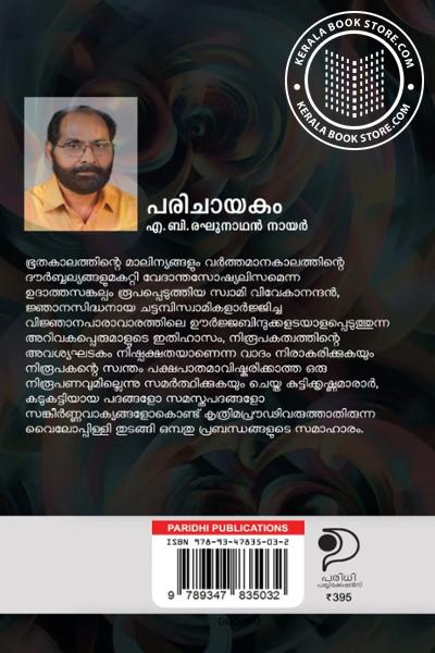 ഭൂതകാലത്തിന്റെ മാലിന്യങ്ങളും വർത്തമാനകാലത്തിന്റെ ദൗർബ്ബല്യങ്ങളുമകറ്റി വേദാന്തസോഷ്യലിസമെന്ന ഉദാത്തസങ്കല്പം രൂപപ്പെടുത്തിയ സ്വാമി വിവേകാനന്ദൻ, ജ്ഞാനസിദ്ധനായ ചട്ടമ്പിസ്വാമികളാർജ്ജിച്ച വിജ്ഞാനപാരാവാരത്തിലെ ഊർജ്ജബിന്ദുക്കളടയാളപ്പെടുത്തുന്ന അറിവകപ്പെരുമാളുടെ ഇതിഹാസം, നിരൂപകത്വത്തിന്റെ അവശ്യഘടകം നിഷ്പക്ഷതയാണെന്ന വാദം നിരാകരിക്കുകയും നിരൂപകന്റെ സ്വന്തം പക്ഷപാതമാവിഷ്കരിക്കാത്ത ഒരു നിരൂപണവുമില്ലെന്നു സമർത്ഥിക്കുകയും ചെയ്ത കുട്ടിക്കൃഷ്ണമാരാർ, കടുകട്ടിയായ പദങ്ങളോ സമസ്തപദങ്ങളോ സങ്കീർണ്ണവാക്യങ്ങളോകൊണ്ട് കൃത്രിമപ്രൗഢിവരുത്താതിരുന്ന വൈലോപ്പിള്ളി തുടങ്ങി ഒമ്പതു പ്രബന്ധങ്ങളുടെ സമാഹാരം.Write a review on this book!. Write Your Review about പരിചായകം Other InformationThis book has been viewed by users 4 times
