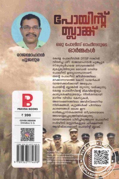 തൻ്റെ പോലീസ് ജീവിതത്തിലെ മറക്കാനാവാത്ത കേസ് ഡയറികൾ വായനക്കാർക്കായി അദ്ദേഹം പോയിൻ്റ് ബ്ലാങ്കിൽ തുറന്നു വയ്ക്കുന്നു. കേരള പോലീസിന്റെ മികവിന്റെയും കാര്യശേഷിയുടെയും നിദർശനമായി മാറിയ വിവിധ കേസുകൾ, അന്വേഷണത്തിലെ അവിസ്മരണീയ നിമിഷങ്ങൾ, കുറ്റങ്ങൾക്ക് പിന്നിലെ കാരണങ്ങൾ ഒക്കെ ഈ ഓർമ്മപ്പുസ്തകത്തിൽ തീവ്രതയോടെ അടയാളപ്പെടുത്തിയിരിക്കുന്നു.