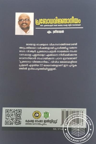മലയാള ഭാഷയുടെ വികസനത്തിനുവേണ്ടി അറുപതിലേറെ വർഷങ്ങളായി പ്രവർത്തിച്ചു വരുന്ന ഡോ. വി.ആർ. പ്രബോധചന്ദ്രൻ നായരുടെ സംഭാ വനകളെ പുതുതലമുറ എങ്ങനെ നിരീക്ഷിക്കുന്നു വെന്നറിയാൻ സഹായിക്കുന്ന പഠന ഗ്രന്ഥമാണ് ’പ്രബോധ വിജ്ഞാനീയം’. വിവിധ മേഖലകളിലെ പ്രമുഖർ എഴുതിയ 22 ലേഖനങ്ങളാണ് ഈ പുസ്തക ത്തിൽ ഉൾപ്പെടുത്തിയിട്ടുള്ളത്.Write a review on this book!. Write Your Review about പ്രബോധവിജ്ഞാനീയം Other InformationThis book has been viewed by users 8 times