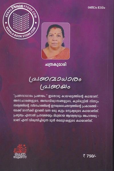 “പ്രണവാധാരം പ്രണയം.“ ഇതൊരു കാലഘട്ടത്തിൻ്റെ കഥയാണ്. അനാചാരങ്ങളുടെ, അന്ധവിശ്വാസങ്ങളുടെ, കുരിരുട്ടിൽ നിന്നും സത്യത്തിന്റെ, സ്നേഹത്തിൻ്റെ ഈശ്വരചൈതന്യത്തിൻ്റെ പ്രകാശത്തി -ലേക്ക് മറനീക്കി ഇറങ്ങി വന്ന ഒരു കൂട്ടം മനുഷ്യരുടെ കഥയാണിത്. പ്രഭുത്വം എന്നാൽ പ്രൗഢതയും മിഥ്യയായ ആഢ്യത്വവും അഹന്തയു മാണ് എന്ന് വിശ്വസിച്ചിരുന്ന മുൻ തലമുറകളുടെ കഥയാണിത്.Write a review on this book!. Write Your Review about പ്രണവാധാരം പ്രണയം - ഭാഗം 2 Other InformationThis book has been viewed by users 6 times