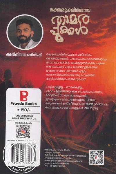 പക്ഷേ എല്ലായിടത്തും ഒരേ ഒരു അടയാളം മാത്രം, രക്തത്തിൽ നനഞ്ഞ താമരപ്പൂക്കൾ. ഈ ദുരൂഹ കൊലപാതകങ്ങളുടെ പിന്നിലെ നിഗൂഢതകൾ തേടി നീങ്ങുമ്പോൾ മറഞ്ഞു കിടന്ന പല രഹസ്യങ്ങളുടെയും ചുരുളുകൾ അഴിയുന്നു.Write a review on this book!. Write Your Review about രക്തരൂക്ഷിതമായ താമര പൂക്കൾ Other InformationThis book has been viewed by users 8 times