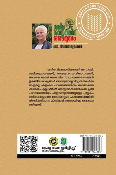 ശരീരവിജ്ഞാനീയമാണ് അനാട്ടമി. ശരീരകോശങ്ങൾ, അവയവസംവിധാനങ്ങൾ, അവയെ ബാധിക്കുന്ന ചില സാധാരണരോഗങ്ങൾ തുടങ്ങിയ കാര്യങ്ങൾ വൈദ്യശാസ്ത്രവിദ്യാർഥികൾക്കു മാത്രമല്ല ചിത്രകല പഠിക്കുന്നവർക്കും സാധാരണക്കാർക്കും എളുപ്പത്തിൽ മനസ്സിലാക്കാനുതകുന്ന പ്രതിപാദനശൈലിയും ചിത്രവിന്യാസങ്ങളുമുള്ള പുസ്തകം. ശരീരശാസ്ത്രത്തെ രോഗങ്ങളുടെ പശ്ചാത്തലത്തിൽ വിശദീകരിക്കുന്ന ക്ലിനിക്കൽ അനാട്ടമിയും ഉള്ളടക്കത്തിലുണ്ട്.Write a review on this book!. Write Your Review about ശരീരശാസ്ത്രത്തിന് ഒരാമുഖം Other InformationThis book has been viewed by users 7 times