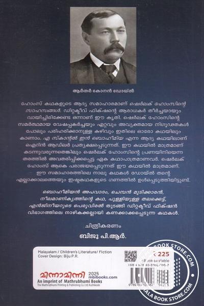 ഹോംസ് കഥകളിലെ ആദ്യ സമാഹാരമായ The Adventures of Sherlock Holmes എന്ന പുസ്തകത്തിന്റെ സമ്പൂര്ണ്ണ മലയാള പരിഭാഷ . നൂറിലേറെ വര്ഷങ്ങള്ക്കു മുന്പ് ബേക്കര് സ്ട്രീറ്റിലെ 221 B മുറിയില് നിന്ന് വിക്ടോറിയന് ലണ്ടനിലെ മഞുമൂടിയ തെരുവുകളിലേക്ക് വഞ്ചനയ്ക്കും ഉപജാപങ്ങള്ക്കും തിന്മയ്ക്കുമെതിരെ പോരാടാനിറങ്ങിയ ഹോംസ് ഇന്നും ലോകത്തെ ഏറ്റവും പ്രിയങ്കരനായ കുറ്റാന്വേഷകനായി തുടരുന്നു . ചുകന്നതലമുടിക്കാരുടെ സംഘം , നീലരത്നം , പുള്ളിക്കുത്തുള്ള നാട തുടങ്ങിയ പ്രശസ്തമായ കേസുകള് അടങ്ങിയ ഈ സമാഹാരത്തിലെ ആദ്യകഥയില് തന്നെ ഹോംസ് ഒരു സ്ത്രീയാല് പരാജയപ്പെടുന്നുണ്ട് . അങ്ങനെ ഹോസിന്റെ സൃഷ്ടാവായ ആര്തര് കോനന് ഡോയല് തന്റെ റിയലിക്വും ഫെമിനിസവും വ്യക്തമാക്കുന്നു .Write a review on this book!. Write Your Review about ഷെര്ലക്ഹോംസിന്റെ സാഹസങ്ങള് Other InformationThis book has been viewed by users 2279 times