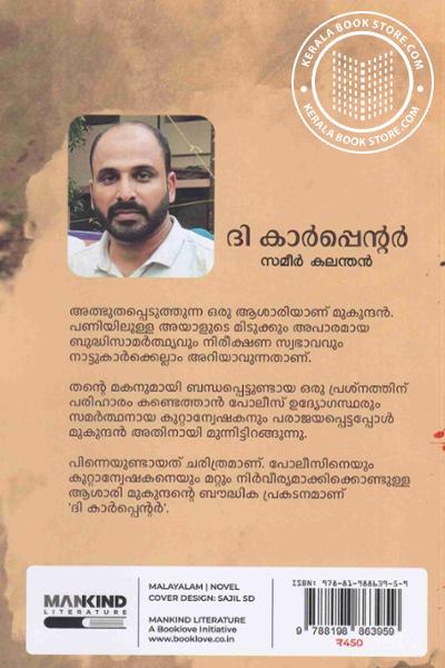 പിന്നെയുണ്ടായത് ചരിത്രമാണ്. പോലീസിനെയും കുറ്റാന്വേഷകനെയും മറ്റും നിർവീര്യമാക്കിക്കൊണ്ടുള്ള ആശാരി മുകുന്ദൻ്റെ ബൗദ്ധിക പ്രകടനമാണ് ’ദി കാർപ്പെന്റർ’.Write a review on this book!. Write Your Review about ദി കാർപ്പെന്റ്റർ Other InformationThis book has been viewed by users 14 times