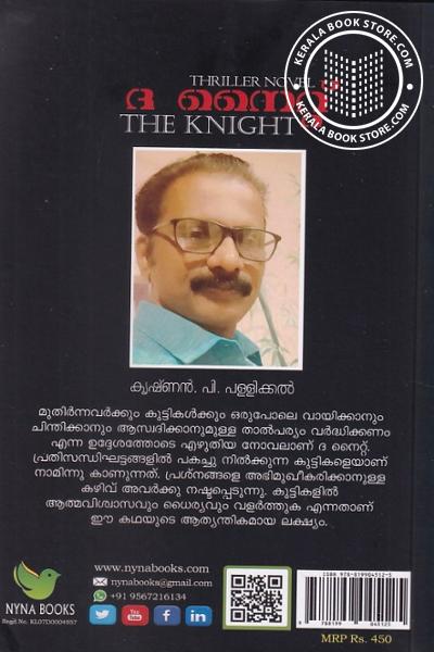 മുതിർന്നവർക്കും കുട്ടികൾക്കും ഒരുപോലെ വായിക്കാനും ചിന്തിക്കാനും ആസ്വദിക്കാനുമുള്ള താൽപര്യം വർദ്ധിക്കണം എന്ന ഉദ്ദേശത്തോടെ എഴുതിയ നോവലാണ് ദ നൈറ്റ്. പ്രതിസന്ധിഘട്ടങ്ങളിൽ പകച്ചു നിൽക്കുന്ന കുട്ടികളെയാണ് നാമിന്നു കാണുന്നത്. പ്രശ്നങ്ങളെ അഭിമുഖീകരിക്കാനുള്ള കഴിവ് അവർക്കു നഷ്ടപ്പെടുന്നു. കുട്ടികളിൽ ആത്മവിശ്വാസവും ധൈര്യവും വളർത്തുക എന്നതാണ് ഈ കഥയുടെ ആത്യന്തികമായ ലക്ഷ്യം.Write a review on this book!. Write Your Review about ദ നൈറ് Other InformationThis book has been viewed by users 5 times