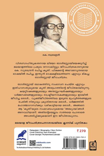ടോള്സ്റ്റോയ് ലോകത്തിനു സംഭാവന ചെയ്ത ഏറ്റവും ഇതിഹാസതുല്യമായ കൃതി അദ്ദേഹത്തിന്റെ ജീവിതമായിരുന്നു. കയറ്റിറക്കങ്ങളുടെയും അന്തസ്സംഘര്ഷങ്ങളുടെയും ധര്മ്മസമരങ്ങളുടെയും രാഷ്ട്രീയനാടകങ്ങളുടെയും ഇടയില് ജീവിച്ച ഒരാള്… വ്യക്തിജീവിതത്തിലെ ഇരുണ്ട മുഹൂര്ത്തങ്ങളുടെ പേരില് നിത്യവും ക്രൂശിതനായ ഒരാള്… ധര്മ്മത്തില് മഹാത്മാഗാന്ധിക്കും വഴികാട്ടിയായ ഒരാള്… അങ്ങനെ ആ ‘കൃതി’യുടെ സംഭവബഹുലമായ ‘അദ്ധ്യായ’ങ്ങള് അനവധിയാണ്. അതിന്റെയെല്ലാം സത്തയെ ചോരാതെ അവതരിപ്പിക്കുകയാണ് ഈ ജീവിതാഖ്യാനം.