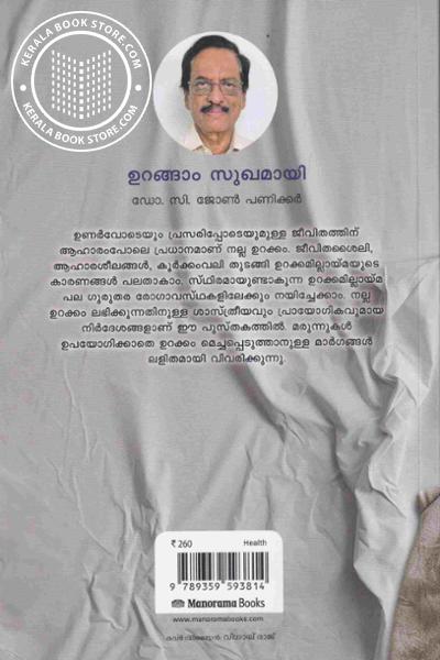 ഉണർവോടെയും പ്രസരിപ്പോടെയുമുള്ള ജീവിതത്തിന് ആഹാരംപോലെ പ്രധാനമാണ് നല്ല ഉറക്കം. ജീവിതശൈലി, ആഹാരശീലങ്ങൾ, കൂർക്കംവലി തുടങ്ങി ഉറക്കമില്ലായ്മയുടെ കാരണങ്ങൾ പലതാകാം. സ്ഥിരമായുണ്ടാകുന്ന ഉറക്കമില്ലായ്മ പല ഗുരുതര രോഗാവസ്ഥകളിലേക്കും നയിച്ചേക്കാം. നല്ല ഉറക്കം ലഭിക്കുന്നതിനുള്ള ശാസ്ത്രീയവും പ്രായോഗികവുമായ നിർദേശങ്ങളാണ് ഈ പുസ്തകത്തിൽ. മരുന്നുകൾ ഉപയോഗിക്കാതെ ഉറക്കം മെച്ചപ്പെടുത്താനുള്ള മാർഗങ്ങൾ ലളിതമായി വിവരിക്കുന്നു.Write a review on this book!. Write Your Review about ഉറങ്ങാം സുഖമായി Other InformationThis book has been viewed by users 15 times