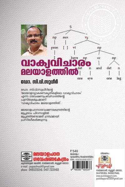 മലയാളപഠനഗവേഷണകേന്ദ്രത്തിന്റെ മുപ്പതാം പിറന്നാളിൽ മുപ്പത്തിരണ്ടാമത് ഗ്രന്ഥമായി പ്രസിദ്ധീകരിക്കുന്നു.Write a review on this book!. Write Your Review about വാക്യവിചാരം മലയാളത്തിൽ Other InformationThis book has been viewed by users 2 times