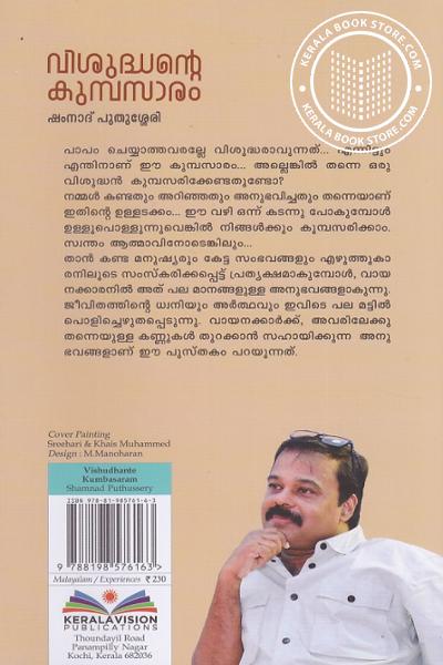 താൻ കണ്ട മനുഷ്യരും കേട്ട സംഭവങ്ങളും എഴുത്തുകാ രനിലൂടെ സംസ്കരിക്കപ്പെട്ട് പ്രത്യക്ഷമാകുമ്പോൾ, വായ നക്കാരനിൽ അത് പല മാനങ്ങളുള്ള അനുഭവങ്ങളാകുന്നു. ജീവിതത്തിന്റെ ധ്വനിയും അർത്ഥവും ഇവിടെ പല മട്ടിൽ പൊളിച്ചെഴുതപ്പെടുന്നു. വായനക്കാർക്ക്, അവരിലേക്കു തന്നെയുള്ള കണ്ണുകൾ തുറക്കാൻ സഹായിക്കുന്ന അനു ഭവങ്ങളാണ് ഈ പുസ്തകം പറയുന്നത്.Write a review on this book!. Write Your Review about വിശുദ്ധന്റെ കുമ്പസാരം Other InformationThis book has been viewed by users 72 times