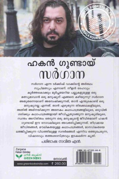 സർഗാന എന്ന ടർക്കിഷ് വാക്കിൻറെ അർത്ഥം സൂചിമത്സ്യം എന്നാണ്. നീളൻ ദേഹവും കൂർത്തകൊക്കും മൂർച്ചയേറിയ പല്ലുകളുമുള്ള ഒരു മത്സ്യമാവാൻ ഒരു മനുഷ്യന് എങ്ങനെ കഴിയുന്നു? സർഗാന അതുതന്നെയാണ് അന്വേഷിക്കുന്നത്, താൻ എന്തുകൊണ്ട് ഒരു മനുഷ്യനല്ല എന്നത്. താൻ എഴുതുന്ന തിരക്കഥകളിലൂടെ, അതിൽ അഭിനയിക്കുന്ന അനേകം കഥാപാത്രങ്ങളിലൂടെ, ഒടുവിൽ ശരിക്കും കഥാപാത്രങ്ങളായി ജീവിച്ചുതുടങ്ങുന്ന മനുഷ്യരിലൂടെ, സ്വന്തം അസ്തിത്വം തേടുന്ന ഒരു മനുഷ്യൻ്റെ ജീവിതമാണ് ഹകൻ ഗുണ്ടായ് ഈ നോവലിലൂടെ അവതരിപ്പിക്കുന്നത്. തീവ്രമായ ജീവിതങ്ങൾ, മൗലികതയുള്ള കഥാപാത്രങ്ങൾ, മാനവികതയെ ലജ്ജിപ്പിക്കുന്ന വിധത്തിലുള്ള സന്ദർഭങ്ങൾ എന്നിവ ഒത്തുചേരുന്ന, വിഷാദവും തത്ത്വശാസ്ത്രവും ഇടകലർന്ന കൃതി.Write a review on this book!. Write Your Review about സർഗാന Other InformationThis book has been viewed by users 3 times